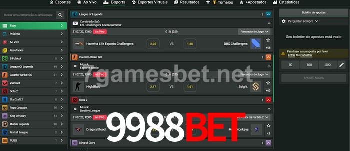 O 9988Bet oferece uma grande seleção de opções de apostas em e-sports com probabilidades competitivas